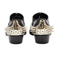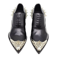 Christian Louboutin Cheliviss Meteor Men’s Black Leather Spiked Dress Shoes – Size 40.5 EU / 7.5 US A few spikes are slightly loose; if desired, this can easily be repaired at any Christian Louboutin boutique or by a skilled cobbler. Add edge to elegance with the Christian Louboutin Cheliviss Meteor Flat, a rare limited-edition design meticulously handcrafted in Italy. Made from smooth black leather, these lace-up Oxford-style shoes feature a sharply pointed toe and polished silver-tone spikes accenting the heel and toe cap. The bold silhouette balances sophistication with attitude, finished with the signature red lacquered sole that embodies Louboutin’s unmistakable craftsmanship and flair. • Christian Louboutin Cheliviss Meteor Flat • Dress / Oxford silhouette • Black leather with silver-tone spikes • Lace-up closure • Signature red lacquered leather sole • Made in Italy • Brand new, never worn, minor imperfections as shown (a few loose spikes) Since 1999, we have proudly served customers worldwide with an unwavering commitment to authenticity, quality, and trust. Every item is 100% authentic, carefully inspected, and securely packaged for safe delivery. Price is firm due to small profit margins.