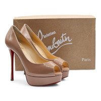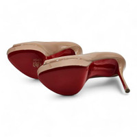 Christian Louboutin Fetish Peep Pumps 150mm – Patent Leather – Nude – 36 (5.5 US) Make a bold statement with the Christian Louboutin Fetish Peep Pumps, an ultra-glamorous design that exudes confidence and elegance. Crafted from luxurious nude patent leather, these sky-high pumps feature a towering 150mm (6-inch) stiletto heel, a hidden platform for added comfort, and a classic peep-toe silhouette. Finished with the iconic red sole, these heels are a must-have for any Louboutin lover. Details: • Brand: Christian Louboutin • Style: Fetish Peep Pumps • Material: Patent Leather • Color: Nude • Heel Height: 150mm (6 inches) • Platform Height: Approx. 1.2 inches • Toe Style: Peep Toe • Sole: Signature Red Bottom • Size: 36 (US 5.5) • Condition: New These statement-making pumps are perfect for special occasions, evening wear, or whenever you want to turn heads!