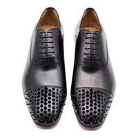 Introducing the Christian Louboutin Gregossic Spike Oxford Shoes—a daring fusion of timeless elegance and edgy sophistication. Expertly crafted from premium black leather, these oxfords blend classic design with bold, contemporary accents. With striking spike embellishments and the signature Louboutin red sole, they embody a fearless approach to luxury footwear, perfect for the modern gentleman who appreciates unconventional style with a touch of refinement. Key Features: • Condition: New with minor imperfections as shown in the pictures • Size: 46 (EU) / 13 (US) • Material: Premium black leather for a sleek, polished look • Design: Classic Oxford silhouette enhanced with bold spike accents for an unmistakably edgy appeal • Signature Detail: Iconic Louboutin red sole, adding a distinctive touch of luxury • Versatility: Ideal for formal occasions, creative events, or any setting where you want to make a powerful style statement