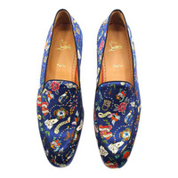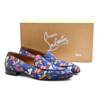 Christian Louboutin Style On The Nile Flat – Blue Silk – EU 46 / US 13 The Christian Louboutin Style On The Nile Flat is a bold and elegant loafer crafted from luxurious blue silk, offering a sleek, sophisticated silhouette with standout appeal. Designed for both formal occasions and upscale styling, this slip-on features refined craftsmanship and the signature red lacquered sole for an unmistakable Louboutin touch. With its smooth, tailored design and vibrant color, the Style On The Nile Flat adds effortless polish to any ensemble while delivering comfort and timeless elegance. • Material: Silk • Color: Blue • Style: Slip-on loafer • Design: Classic silhouette with smooth, tailored finish • Sole: Signature red lacquered sole • Size: EU 46 / US 13 • Condition: Brand new with box. Minor cosmetic imperfection on the right shoe as shown in the pictures. • Made in: Italy