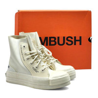 Step into bold design with the Converse x Ambush Chuck 70 Hi in the 'Off-White' colorway, style code 166514C. This limited-edition collaboration between Converse and Ambush reimagines the classic Chuck Taylor with a futuristic, utilitarian silhouette crafted from a durable rubberized shell. Featuring unique molded detailing, oversized foxing, and dual branding at the heel, these sneakers are an avant-garde twist on a heritage icon. * Condition: New store display – show minor cosmetic imperfections from handling, particularly around the toe guard and sidewalls (please review photos). Never tried one, the insoles are new. * Size: Men’s US 8 / Women’s US 10 / UK 8 / EU 41.5 * Color: Off-White / White * Material: Rubber-coated upper with tonal laces and contrast outsole * Inclusions: Original box, alternate orange lace set, branded insoles The text detailing across the upper – "Keep double laced to hold firmly" and "Fold over this side only to hold firmly" – adds a utilitarian feel to an already bold piece of footwear innovation. Style Code: 166514C Made in Vietnam ---------------------------------------- Please Note: As a store display item, this pair may have been tried on or handled in-store. Minor surface blemishes are present as shown but do not affect wear or structure. Offered at a competitive price due to these factors. Price is firm due to limited availability and the collectible nature of this model.