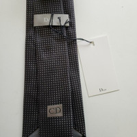 Christian Dior Navy and Silver Polka Dots Silk Tie