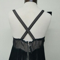 Dolce & Gabbana Silk Blend Dress Back Zipper Closure. Bow at the Shoulder. Fringe/Flapper. The Great Gatsby Style. Color: Black Design Features: Fringe Dress Length: Above Knee, Mini Look: Flapper Material: Silk Blend Occasion: Cocktail Pattern: Textured Size Type: Regular Sleeve Length: Spaghetti Strap Sleeve Style: Spaghetti Strap Style: Empire Waist, Flapper Made in Italy.