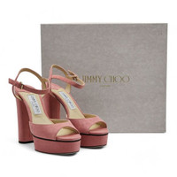 Jimmy Choo Peachy Platform Sandals 125mm Brand new with box and dustbag. Store price: $850. Size: 39.5 (9 US) Heel height: 125mm. (5 in.) Platform: 30mm (1.2 in.) Vintage-inspired leather platform sandals by Jimmy Choo. Suede leather. Peep toe. Adjustable ankle strap. Leather lining. Leather platform sole. Made in Italy.