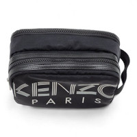 Kenzo Double Zip Logo Print Nylon Clutch | Black | NEW