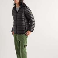 STONE ISLAND Channel Logo-Appliquéd Quilted Shell Hooded Down Jacket