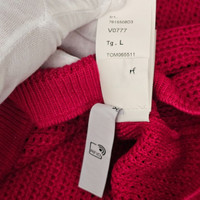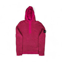 Store price: $850 Hooded half-zip knit in mercerised cotton linen. Large net stitch. 5 gauge. Hood lining and ear detail in nylon canvas. Zip collar fastening edged in nylon canvas. Stone Island badge on the left sleeve. Ribbed cuffs and bottom band. Made in Italy Measurements Chest: 22 Shoulders: 18 Length: 26