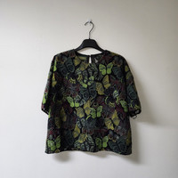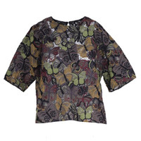 New with tags Colorful guipure lace Signature butterfly pattern Short sleeve Round neck Scalloped edges Made in Italy Size 44 Oversized Shoulders 21” Bust 20” Length 21” (back)