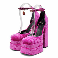 Versace Medusa Aevitas Double Platform Pumps - Velvet - Pink 37 6.5US $1445