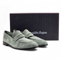 Brand new with box. Small mark as shown in the pictures. Season: SS24. Size: 10 US (9 UK) • Suede. • L'Asola band. • Reverse construction. • Leather lining. • Leather outsole. • Made in Italy. • Fits true to size. Zegna code: 221.LHCAC.A4675X. Color: Light Green. Notes from Zegna: "Smooth suede softens the classic silhouette of the cognac L'Asola loafers for a more deconstructed look. Designed with an ultra flexible reverse construction, these loafers ensure the highest level of comfort all day long. The iconic L'Asola cut-out on the band signs off the look." Suede: "Clean with a brush designed for use with suede. Avoid contact with abrasives, water and substances containing alcohol, such as perfumes, solvents, etc. In case of contact with water, it is important to let the footwear dry completely before cleaning. Store in the included dust bag in a cool, dry place."