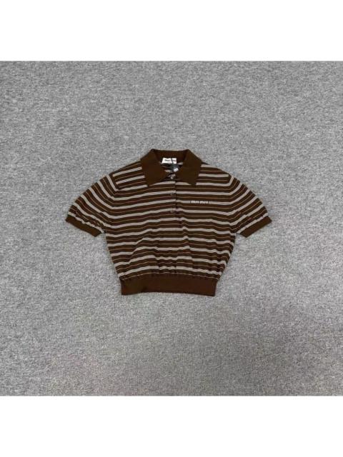 Miu Miu Striped Knitted Polo Shirt in Brown