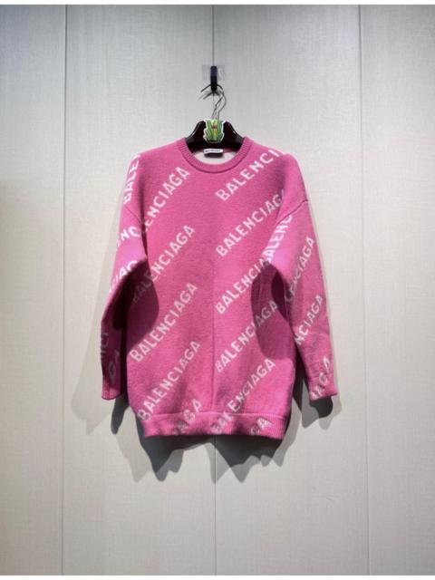 Balenciaga Allover Logo Wool Blend Pink Sweater