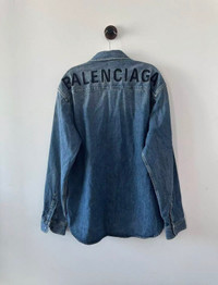 Balenciaga Back Logo Denim Jacket Great condition Size 38 Authenticity guaranteed. Every item is 100% genuine, carefully inspected before shipping, and exactly as shown in the photos. Shipping and delivery. Orders are processed within 3-6 business days, then packed and shipped worldwide via DHL, UPS, USPS, FedEx. Order Cancellation & Returns. All sales are final. We do not accept cancellations or returns except in cases where the item is proven inauthentic or not as described. Enjoy the style, enjoy the experience, and thank you for shopping with Devines.