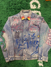 Balenciaga Graffiti Denim Jacket Used with some signs of wear. Size 34 Authenticity guaranteed. Every item is 100% genuine, carefully inspected, and exactly as shown in the photos. Extra inspection. Each item goes through a second inspection before shipping. Then we pack, ship and upload tracking. Shipping and delivery. Orders are shipped within 6 to 10 business days. Shipping worldwide via DHL, UPS, USPS, FedEx. Enjoy the style, enjoy the experience, and thank you for shopping with Devines.