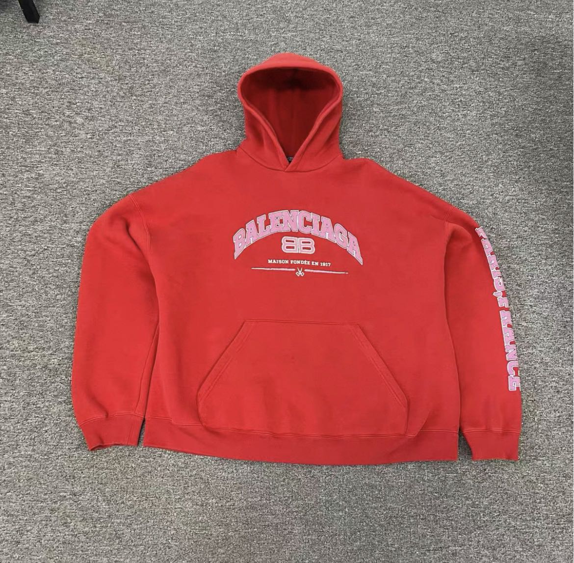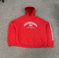 Balenciaga Maison Wide Fit Hoodie in red In great condition. Size 2 Authenticity guaranteed. Every item is 100% genuine, carefully inspected, and exactly as shown in the photos. Extra inspection. Each item goes through a second inspection before shipping. Then we pack, ship and upload tracking. Shipping and delivery. Orders are shipped within 6 to 10 business days. Shipping worldwide via DHL, UPS, USPS, FedEx. Enjoy the style, enjoy the experience, and thank you for shopping with Devines.