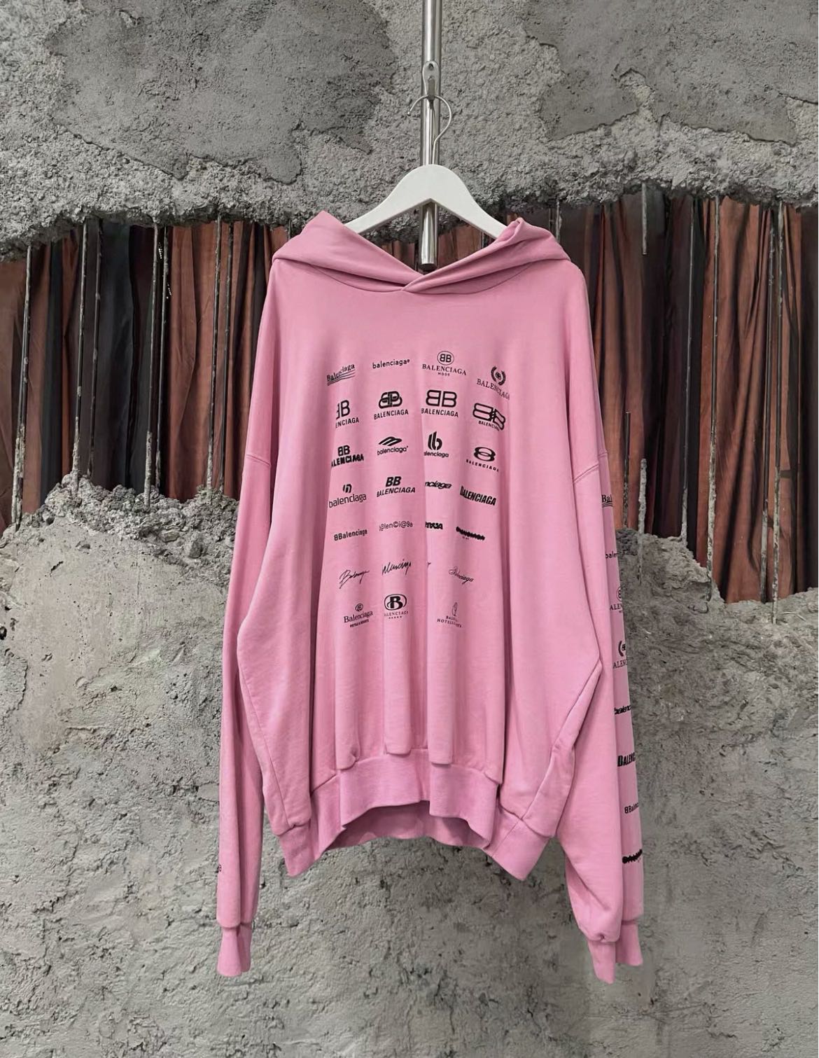Balenciaga Multi Logo Pink Graphic hoodie Great condition with some signs of wear Size M Authenticity guaranteed. Every item is 100% genuine, carefully inspected, and exactly as shown in the photos. Extra inspection. Each item goes through a second inspection before shipping. Then we pack, ship and upload tracking. Shipping and delivery. Orders are shipped within 6 to 10 business days. Shipping worldwide via DHL, UPS, USPS, FedEx. Enjoy the style, enjoy the experience, and thank you for shopping with Devines.