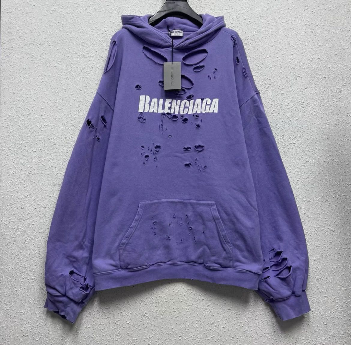 Balenciaga Purple Destroyed Hoodie Lightly used, without defects. Size XL Length 82cm Chest 83cm Authenticity guaranteed. Every item is 100% genuine, carefully inspected, and exactly as shown in the photos. Extra inspection. Each item goes through a second inspection before shipping. Then we pack, ship and upload tracking. Shipping and delivery. Orders are shipped within 6 to 10 business days. Shipping worldwide via DHL, UPS, USPS, FedEx. Enjoy the style, enjoy the experience, and thank you for shopping with Devines.