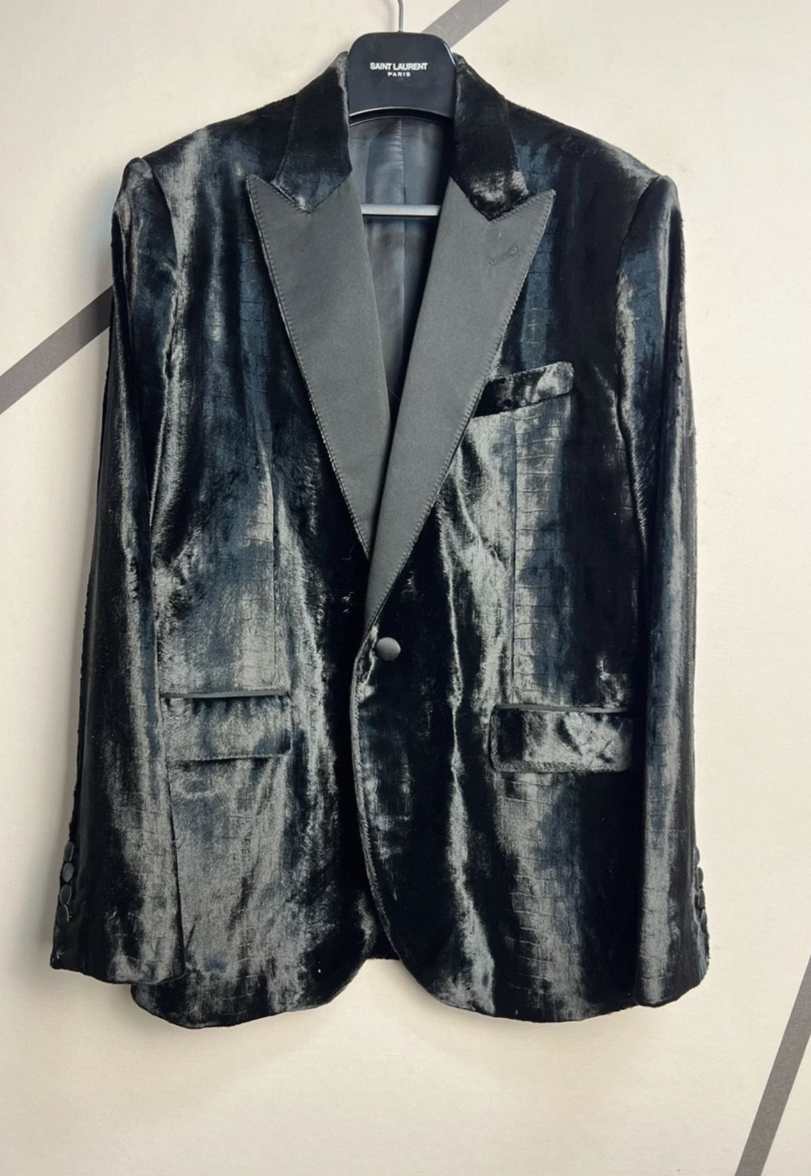 CELINE Velvet Black Tuxedo Jacket Great condition Size 48 Authenticity guaranteed. Every item is 100% genuine, carefully inspected before shipping, and exactly as shown in the photos. Shipping and delivery. Orders are processed within 3-6 business days, then packed and shipped worldwide via DHL, UPS, USPS, FedEx. Order Cancellation & Returns. All sales are final. We do not accept cancellations or returns except in cases where the item is proven inauthentic or not as described. Enjoy the style, enjoy the experience, and thank you for shopping with Devines.