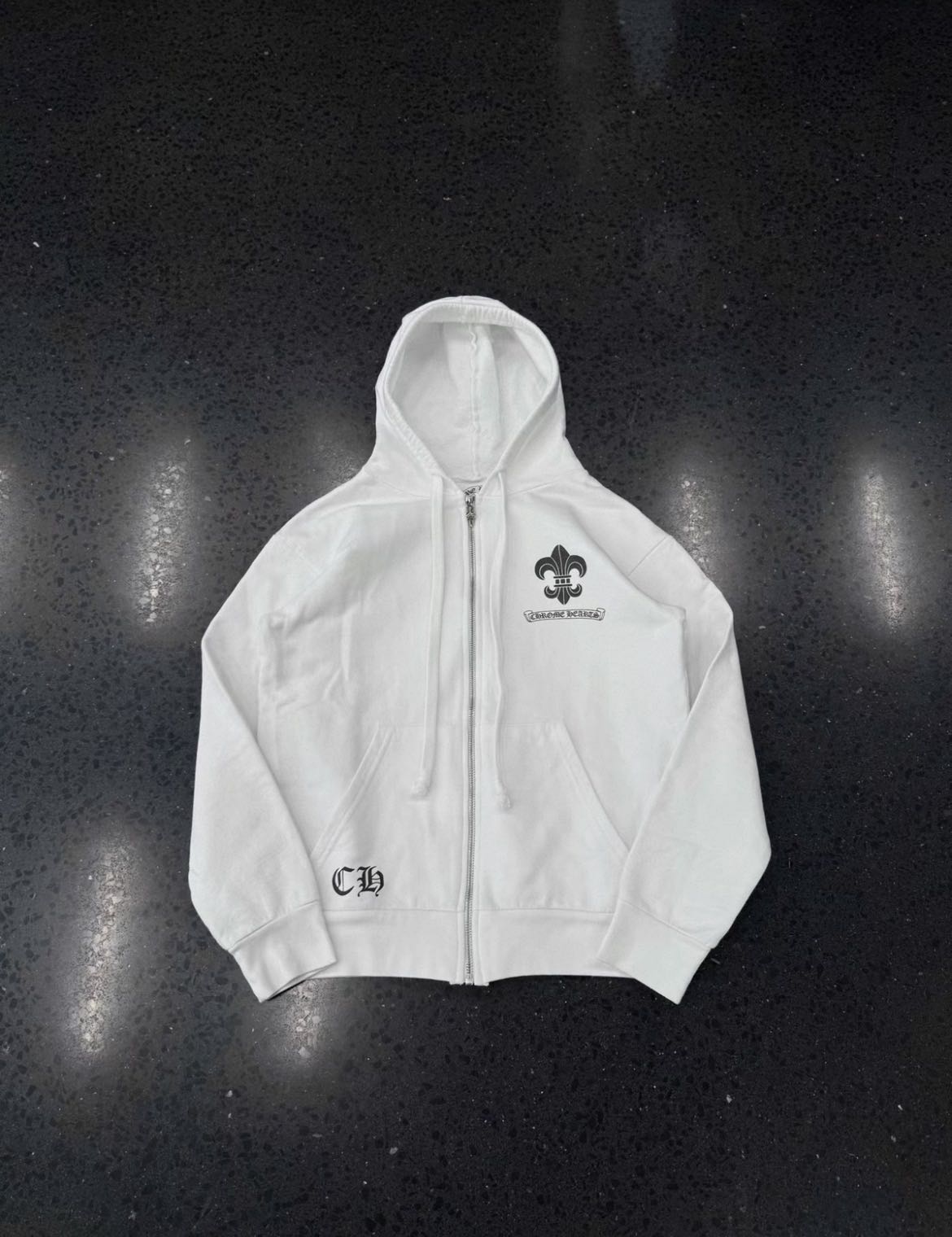 Chrome Hearts Fleur zip-up hoodie Great condition Size S Authenticity guaranteed. Every item is 100% genuine, carefully inspected before shipping, and exactly as shown in the photos. Shipping and delivery. Orders are processed within 3-6 business days, then packed and shipped worldwide via DHL, UPS, USPS, FedEx. Order Cancellation & Returns. All sales are final. We do not accept cancellations or returns except in cases where the item is proven inauthentic or not as described. Enjoy the style, enjoy the experience, and thank you for shopping with Devines.