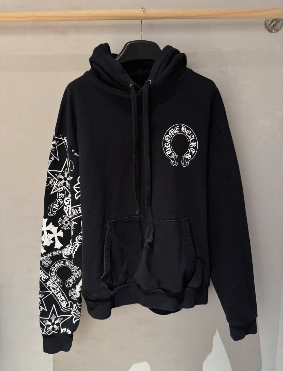 Chrome Hearts Stencil Sleeve Black Graphic Hoodie Used with signs of wear. Size S Authenticity guaranteed. Every item is 100% genuine, carefully inspected, and exactly as shown in the photos. Extra inspection. Each item goes through a second inspection before shipping. Then we pack, ship and upload tracking. Shipping and delivery. Orders are shipped within 6 to 10 business days. Shipping worldwide via DHL, UPS, USPS, FedEx. Enjoy the style, enjoy the experience, and thank you for shopping with Devines.