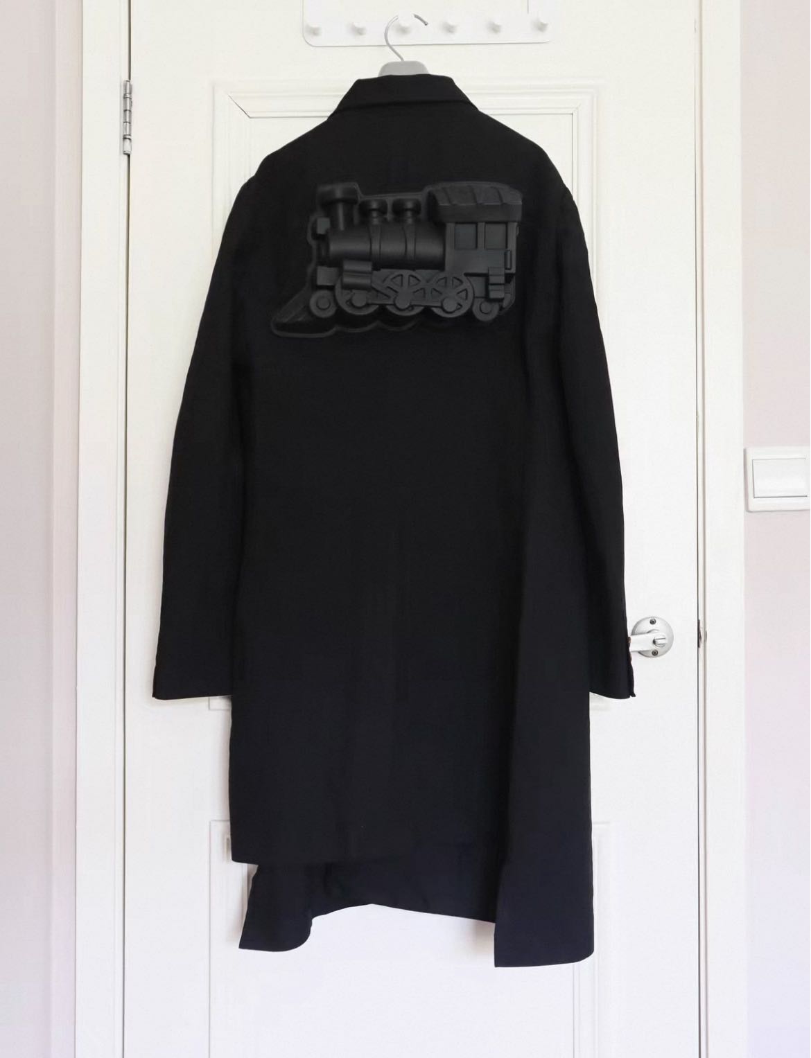 Comme des Garcons Homme Plus runway black back Rubber Train Cutting Misaligned from 17AW "Boyhood" coat