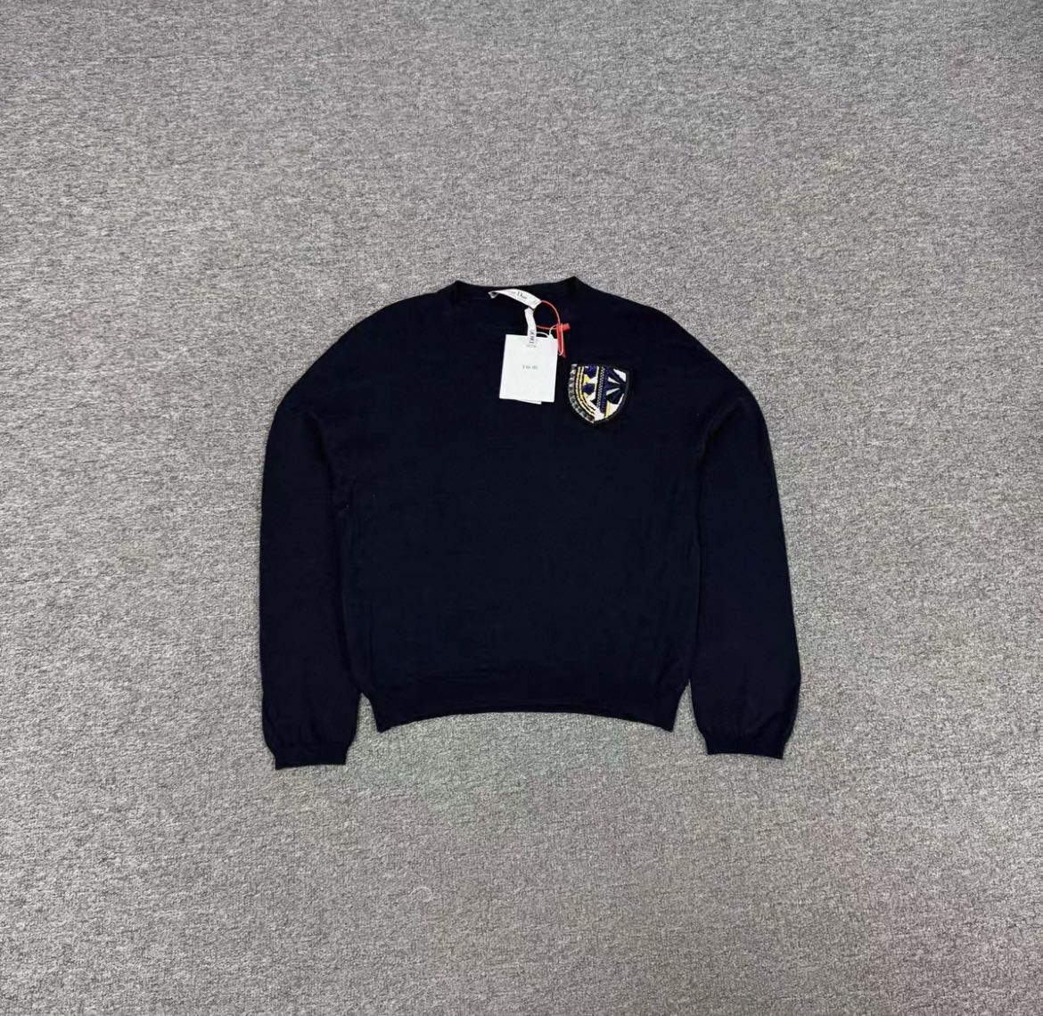 Dior navy blue round neck wool knit sweater