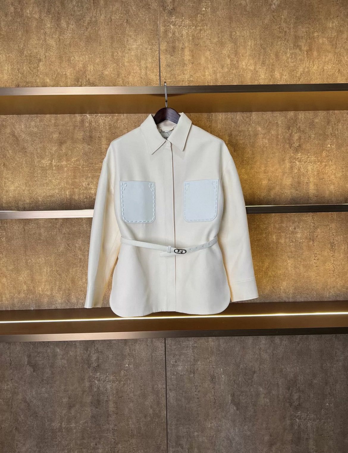Fendi Cream Wool & Silk Belted Leather Pocket Jacket Great condition Size 44 Authenticity guaranteed. Every item is 100% genuine, carefully inspected before shipping, and exactly as shown in the photos. Shipping and delivery. Orders are processed within 3-6 business days, then packed and shipped worldwide via DHL, UPS, USPS, FedEx. Order Cancellation & Returns. All sales are final. We do not accept cancellations or returns except in cases where the item is proven inauthentic or not as described. Enjoy the style, enjoy the experience, and thank you for shopping with Devines.