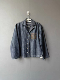 Loewe Anagram Embroidered Denim Shirt in indigo denim In great condition lightly used Size 36 Authenticity guaranteed. Every item is 100% genuine, carefully inspected, and exactly as shown in the photos. Extra inspection. Each item goes through a second inspection before shipping. Then we pack, ship and upload tracking. Shipping and delivery. Orders are shipped within 6 to 10 business days. Shipping worldwide via DHL, UPS, USPS, FedEx. Enjoy the style, enjoy the experience, and thank you for shopping with Devines.