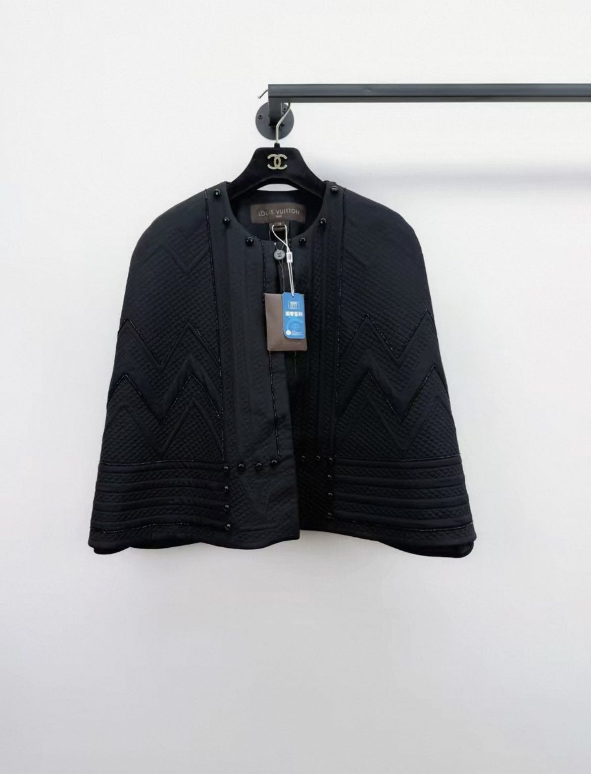 Louis Vuitton silk cape in black Brand new Size 38 Authenticity guaranteed. Every item is 100% genuine, carefully inspected before shipping, and exactly as shown in the photos. Shipping and delivery. Orders are processed within 3-6 business days, then packed and shipped worldwide via DHL, UPS, USPS, FedEx. Order Cancellation & Returns. All sales are final. We do not accept cancellations or returns except in cases where the item is proven inauthentic or not as described. Enjoy the style, enjoy the experience, and thank you for shopping with Devines.