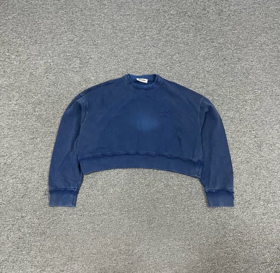 Miu Miu Blue Cotton Fleece Cropped Sweatshirt In great condition wit some signs of wear. Size S Authenticity guaranteed. Every item is 100% genuine, carefully inspected, and exactly as shown in the photos. Extra inspection. Each item goes through a second inspection before shipping. Then we pack, ship and upload tracking. Shipping and delivery. Orders are shipped within 6 to 10 business days. Shipping worldwide via DHL, UPS, USPS, FedEx. Enjoy the style, enjoy the experience, and thank you for shopping with Devines.