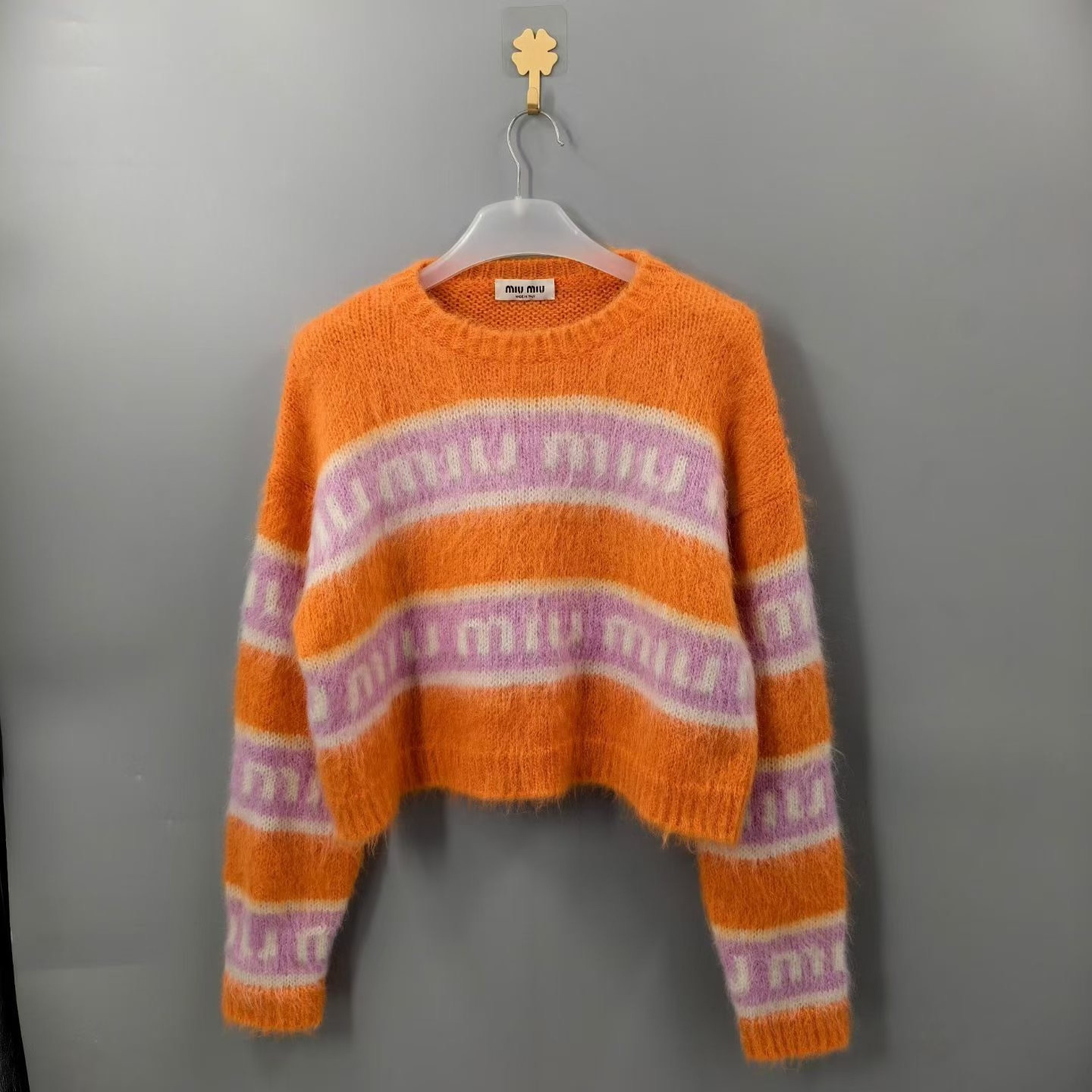Miu Miu multicolor striped knit sweater The item is in excellent condition, with minimal signs of wear. Size: 40 Authenticity guaranteed. Every item is 100% genuine, carefully inspected before shipping, and exactly as shown in the photos. Shipping and delivery. Orders are processed within 3-6 business days, then packed and shipped worldwide via DHL, UPS, USPS, FedEx. Order Cancellation & Returns. All sales are final. We do not accept cancellations or returns except in cases where the item is proven inauthentic or not as described. Enjoy the style, enjoy the experience, and thank you for shopping with Devines.