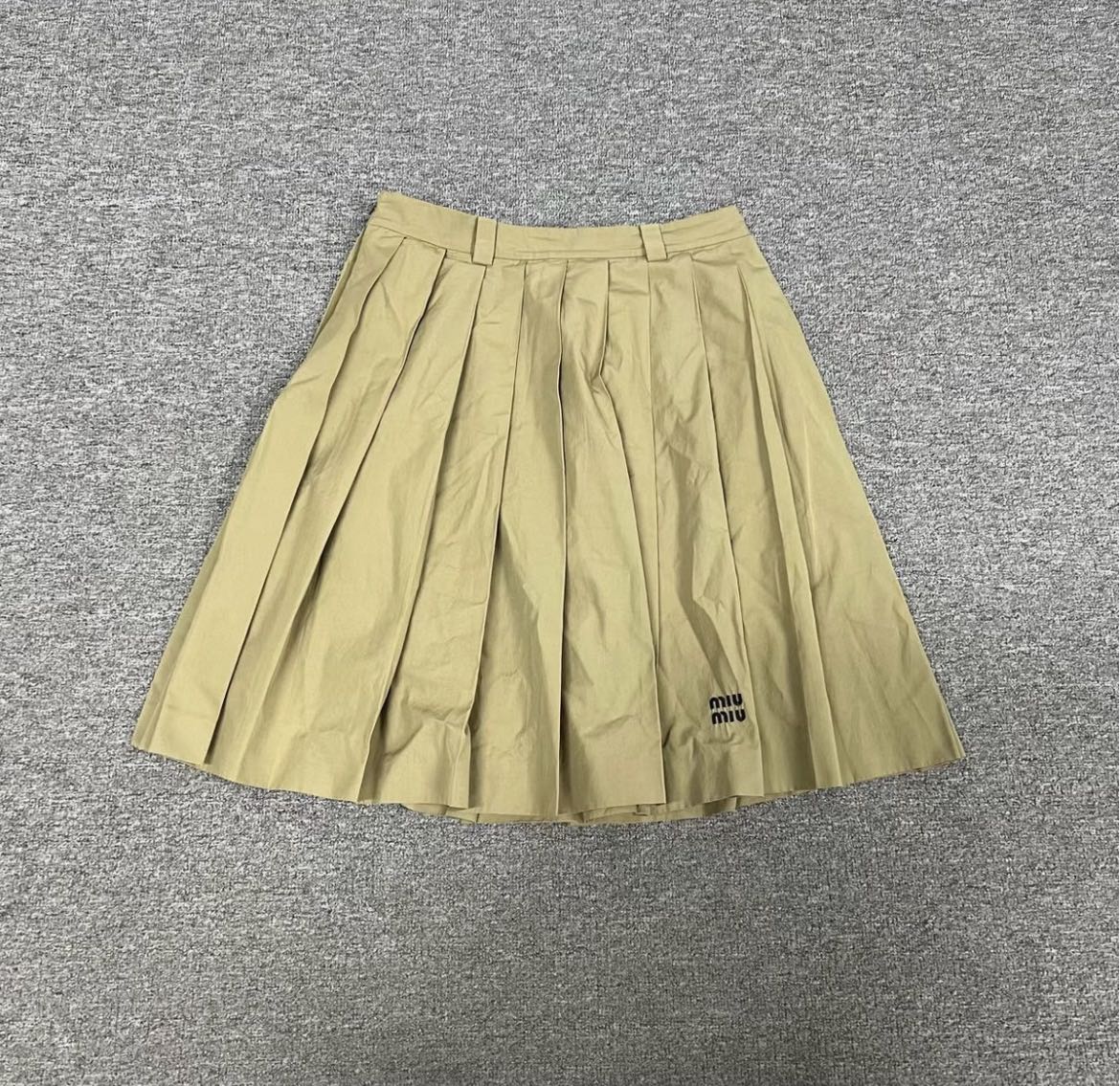 Miu Miu pleated cotton midi skirt in beige In great condition. Size 38 Authenticity guaranteed. Every item is 100% genuine, carefully inspected, and exactly as shown in the photos. Extra inspection. Each item goes through a second inspection before shipping. Then we pack, ship and upload tracking. Shipping and delivery. Orders are shipped within 6 to 10 business days. Shipping worldwide via DHL, UPS, USPS, FedEx. Enjoy the style, enjoy the experience, and thank you for shopping with Devines.