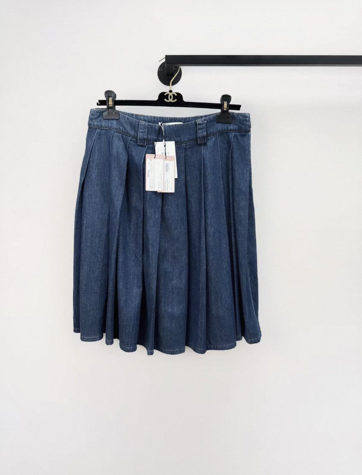 Miu Miu pleated denim mini skirt Brand new Size 38 Authenticity guaranteed. Every item is 100% genuine, carefully inspected before shipping, and exactly as shown in the photos. Shipping and delivery. Orders are processed within 3-6 business days, then packed and shipped worldwide via DHL, UPS, USPS, FedEx. Order Cancellation & Returns. All sales are final. We do not accept cancellations or returns except in cases where the item is proven inauthentic or not as described. Enjoy the style, enjoy the experience, and thank you for shopping with Devines.