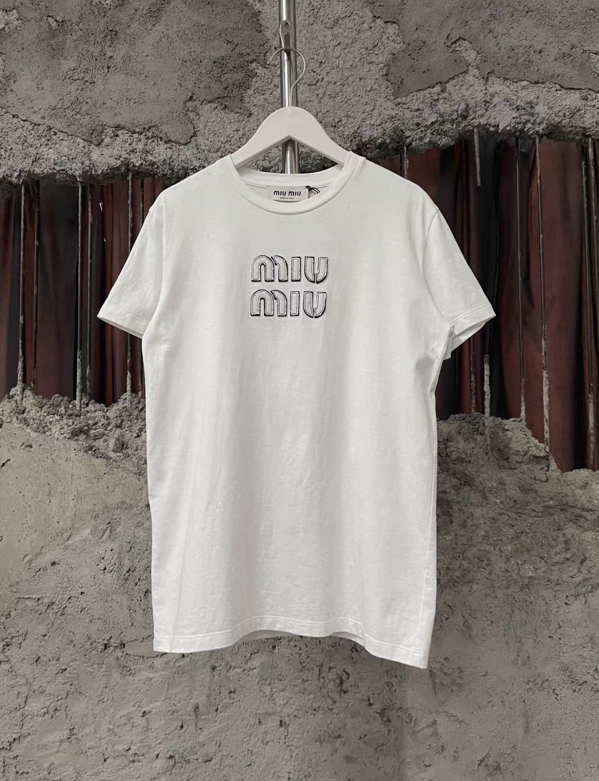 MIU MIU SS23 White Logo Print Casual Crewneck T-Shirt
