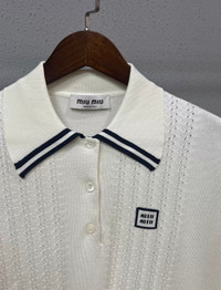 Miu Miu white cotton knit polo shirt Great condition Size 40 Authenticity guaranteed. Every item is 100% genuine, carefully inspected, and exactly as shown in the photos. Extra inspection. Each item goes through a second inspection before shipping. Then we pack, ship and upload tracking. Shipping and delivery. Orders are processed within 3-6 business days, then packed and shipped worldwide via DHL, UPS, USPS, FedEx. Enjoy the style, enjoy the experience, and thank you for shopping with Devines.