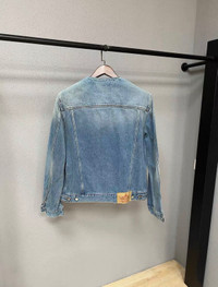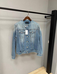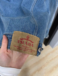 Prada Blue Denim Collarless Jacket Great condition Size XL Authenticity guaranteed. Every item is 100% genuine, carefully inspected, and exactly as shown in the photos. Extra inspection. Each item goes through a second inspection before shipping. Then we pack, ship and upload tracking. Shipping and delivery. Orders are processed within 3-6 business days, then packed and shipped worldwide via DHL, UPS, USPS, FedEx. Enjoy the style, enjoy the experience, and thank you for shopping with Devines.