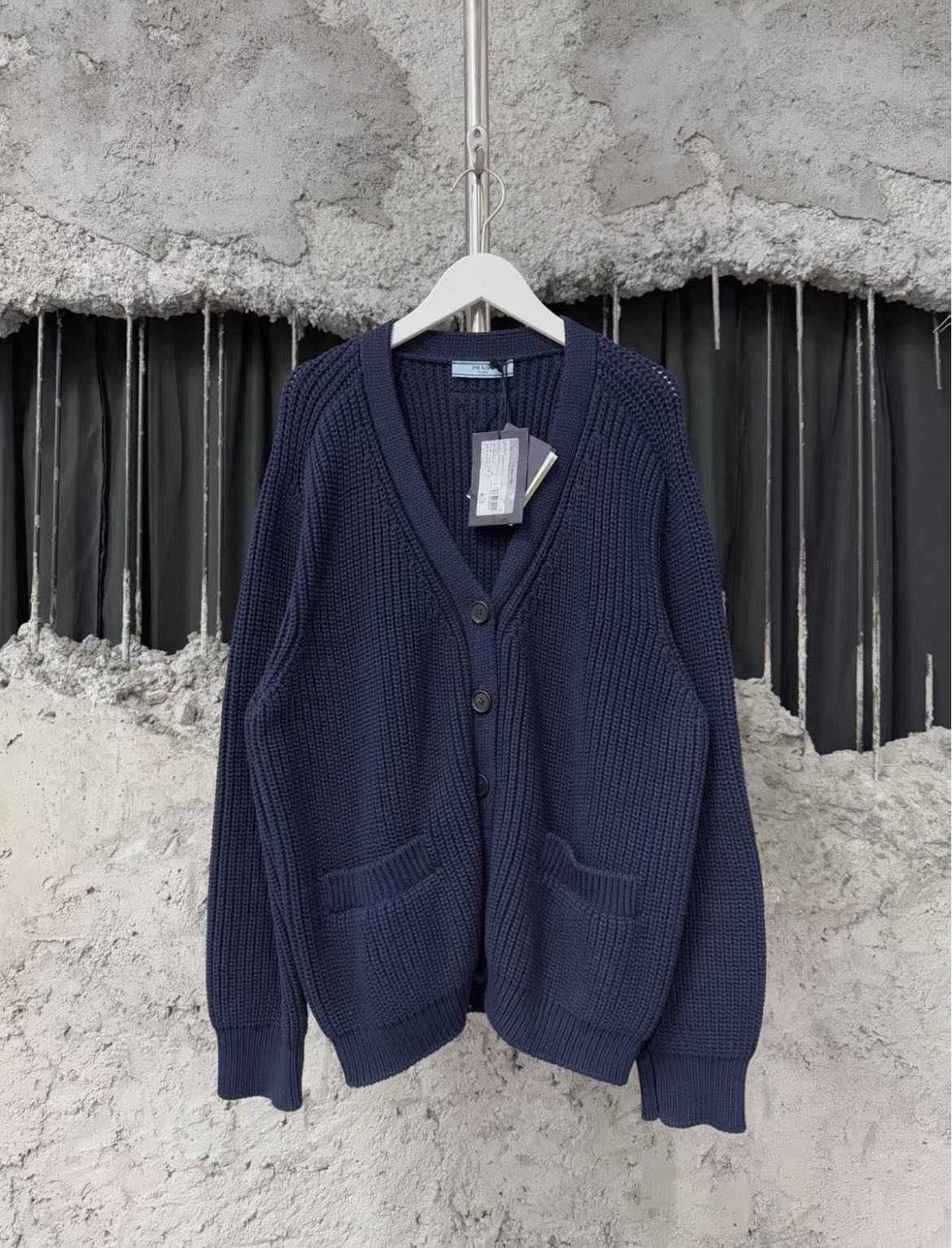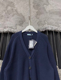Prada navy blue wool cardigan New with tags Size 38 Authenticity guaranteed. Every item is 100% genuine, carefully inspected, and exactly as shown in the photos. Extra inspection. Each item goes through a second inspection before shipping. Then we pack, ship and upload tracking. Shipping and delivery. Orders are shipped within 6 to 10 business days. Shipping worldwide via DHL, UPS, USPS, FedEx. Enjoy the style, enjoy the experience, and thank you for shopping with Devines.