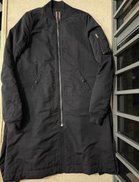 Rick Owens DRKSHDW long MA-1 bomber jacket coat Great condition, lightly used Size M Authenticity guaranteed. Every item is 100% genuine, carefully inspected, and exactly as shown in the photos. Extra inspection. Each item goes through a second inspection before shipping. Then we pack, ship and upload tracking. Shipping and delivery. Orders are shipped within 6 to 10 business days. Shipping worldwide via DHL, UPS, USPS, FedEx. Enjoy the style, enjoy the experience, and thank you for shopping with Devines.
