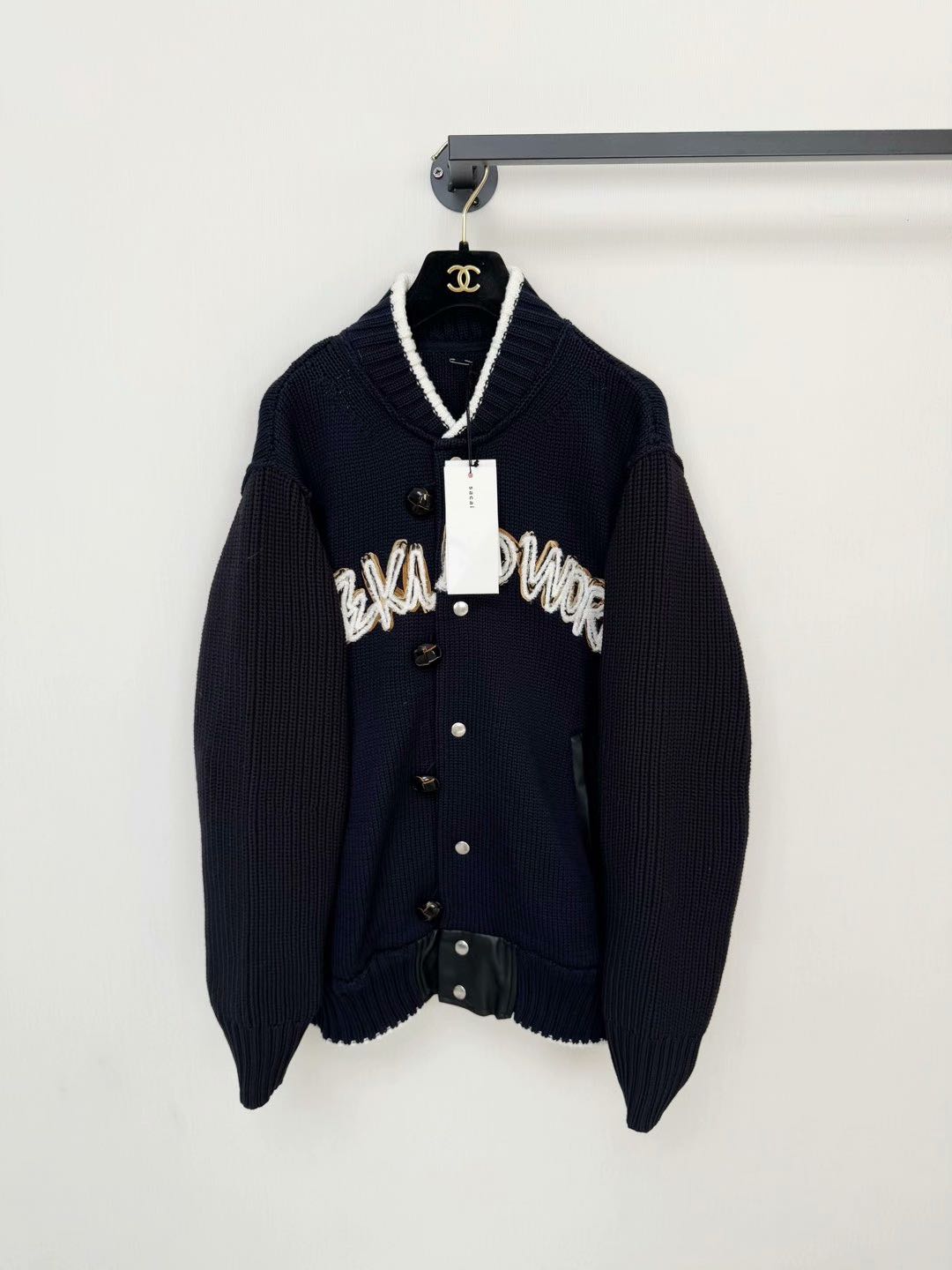 Sacai brand knit baseball jacket Gently worn, almost new with minimal wear. Size: Equivalent to S size Measurements: Shoulder 36cm, Chest 98cm, Length 115cm, Waist 80cm Authenticity guaranteed. Every item is 100% genuine, carefully inspected before shipping, and exactly as shown in the photos. Shipping and delivery. Orders are processed within 3-6 business days, then packed and shipped worldwide via DHL, UPS, USPS, FedEx. Order Cancellation & Returns. All sales are final. We do not accept cancellations or returns except in cases where the item is proven inauthentic or not as described. Enjoy the style, enjoy the experience, and thank you for shopping with Devines.