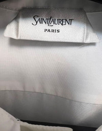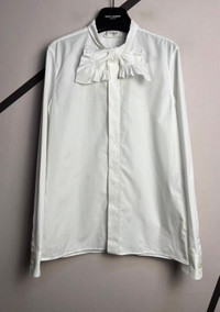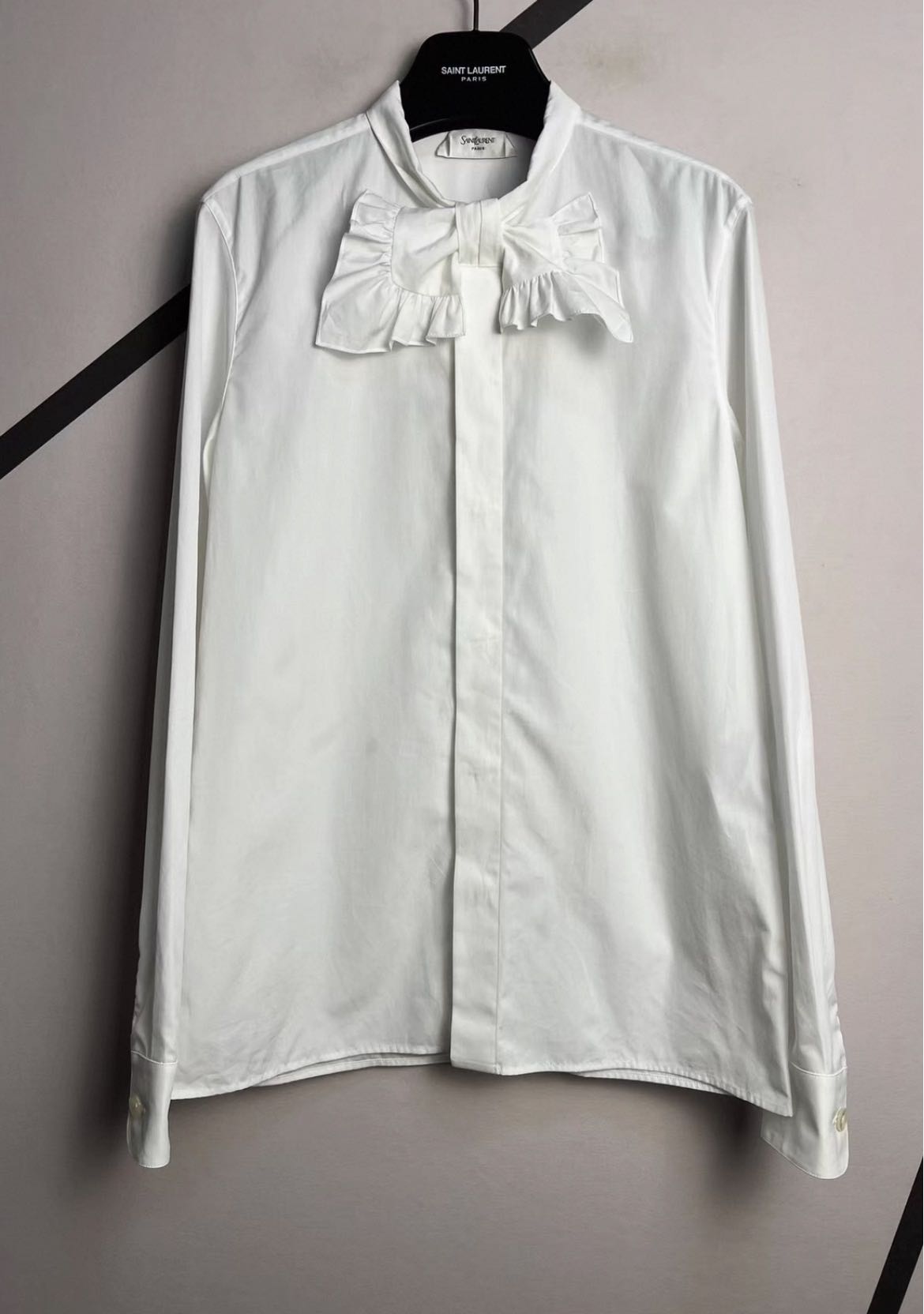 Saint Laurent 25SS Bow Tie Shirt In White In great condition with some signs of wear. Size 37 Authenticity guaranteed. Every item is 100% genuine, carefully inspected, and exactly as shown in the photos. Extra inspection. Each item goes through a second inspection before shipping. Then we pack, ship and upload tracking. Shipping and delivery. Orders are shipped within 6 to 10 business days. Shipping worldwide via DHL, UPS, USPS, FedEx. Enjoy the style, enjoy the experience, and thank you for shopping with Devines.