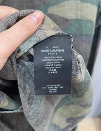 Saint Laurent camouflage jacket Great condition, lightly used. Size S Authenticity guaranteed. Every item is 100% genuine, carefully inspected, and exactly as shown in the photos. Extra inspection. Each item goes through a second inspection before shipping. Then we pack, ship and upload tracking. Shipping and delivery. Orders are processed within 3-6 business days, then packed and shipped worldwide via DHL, UPS, USPS, FedEx. Enjoy the style, enjoy the experience, and thank you for shopping with Devines.