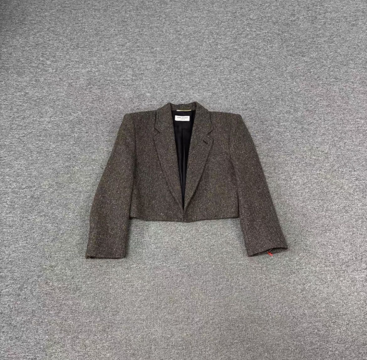 Saint Laurent herringbone wool cropped blazer Great condition Size 36 Authenticity guaranteed. Every item is 100% genuine, carefully inspected before shipping, and exactly as shown in the photos. Shipping and delivery. Orders are processed within 3-6 business days, then packed and shipped worldwide via DHL, UPS, USPS, FedEx. Order Cancellation & Returns. All sales are final. We do not accept cancellations or returns except in cases where the item is proven inauthentic or not as described. Enjoy the style, enjoy the experience, and thank you for shopping with Devines.