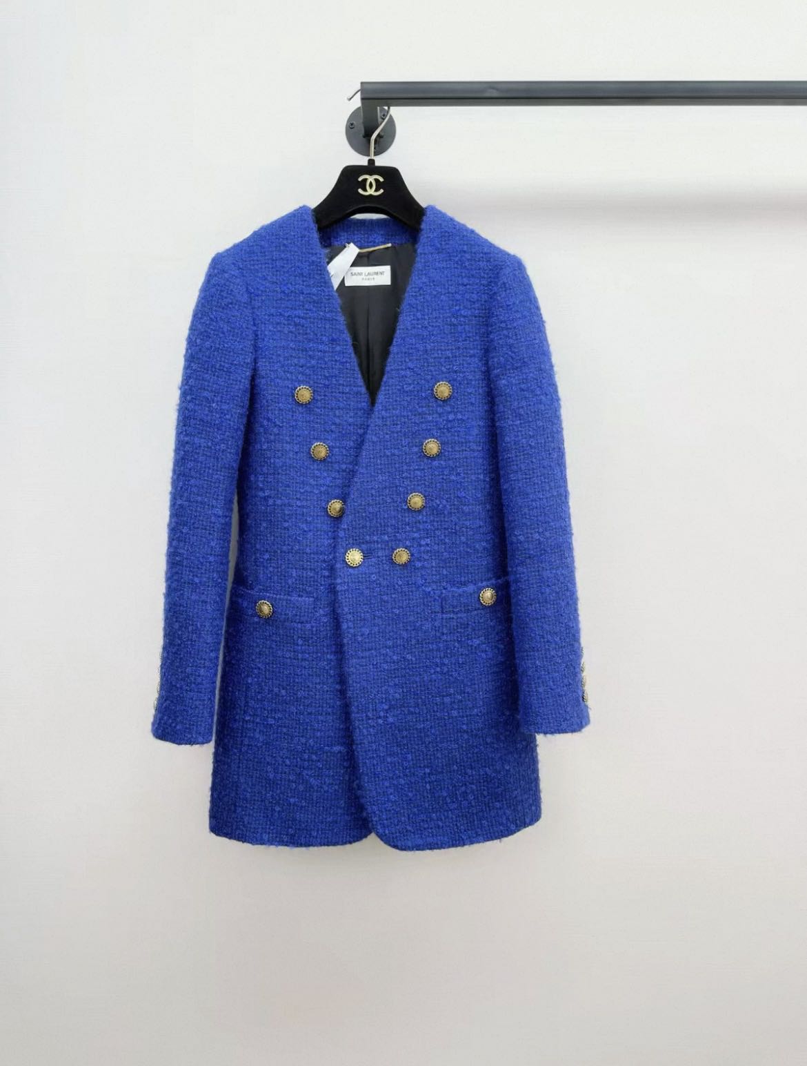 Saint Laurent Paris double-breasted tweed jacket in blue