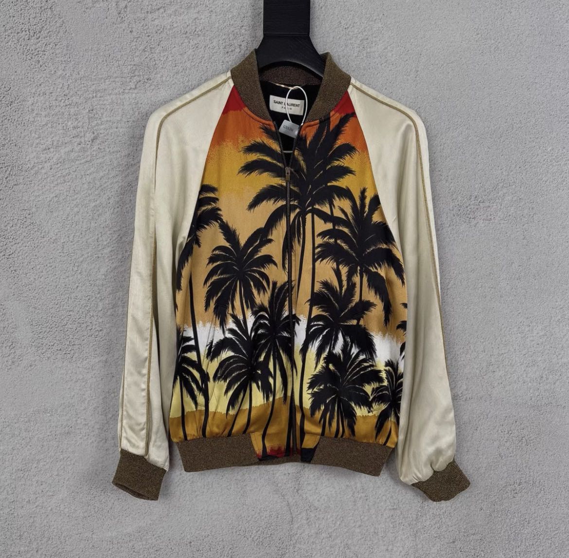 Saint Laurent Paris palm-tree print souvenir jacket Great condition Size 38 Authenticity guaranteed. Every item is 100% genuine, carefully inspected before shipping, and exactly as shown in the photos. Shipping and delivery. Orders are processed within 3-6 business days, then packed and shipped worldwide via DHL, UPS, USPS, FedEx. Order Cancellation & Returns. All sales are final. We do not accept cancellations or returns except in cases where the item is proven inauthentic or not as described. Enjoy the style, enjoy the experience, and thank you for shopping with Devines.