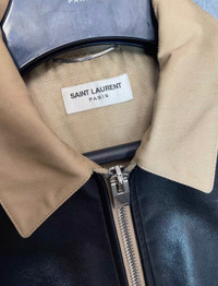Saint Laurent SS13 Khaki Lambskin Panel Jacket In great condition. Size 52 Authenticity guaranteed. Every item is 100% genuine, carefully inspected, and exactly as shown in the photos. Extra inspection. Each item goes through a second inspection before shipping. Then we pack, ship and upload tracking. Shipping and delivery. Orders are shipped within 6 to 10 business days. Shipping worldwide via DHL, UPS, USPS, FedEx. Enjoy the style, enjoy the experience, and thank you for shopping with Devines.