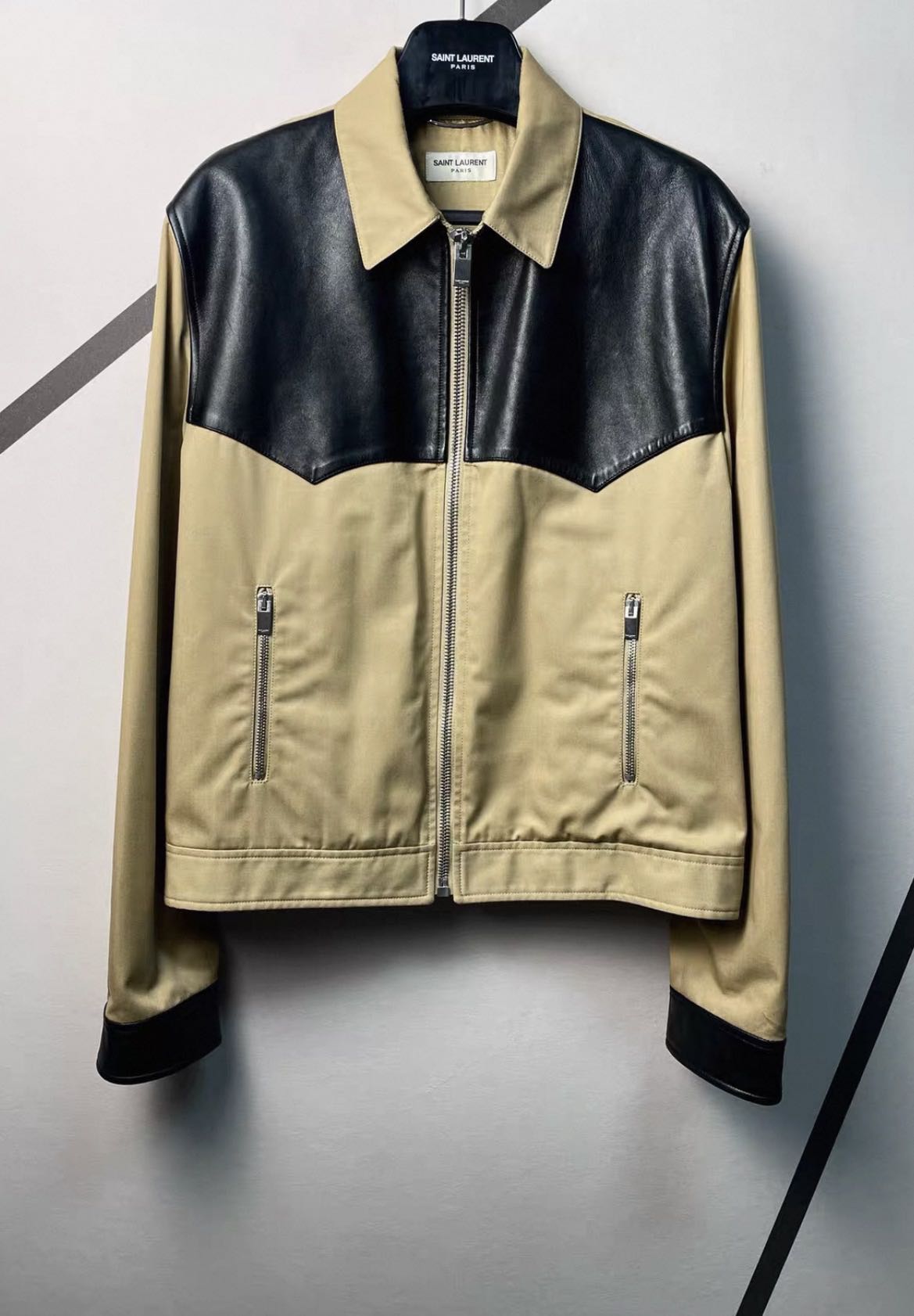 Saint Laurent SS13 Khaki Lambskin Panel Jacket