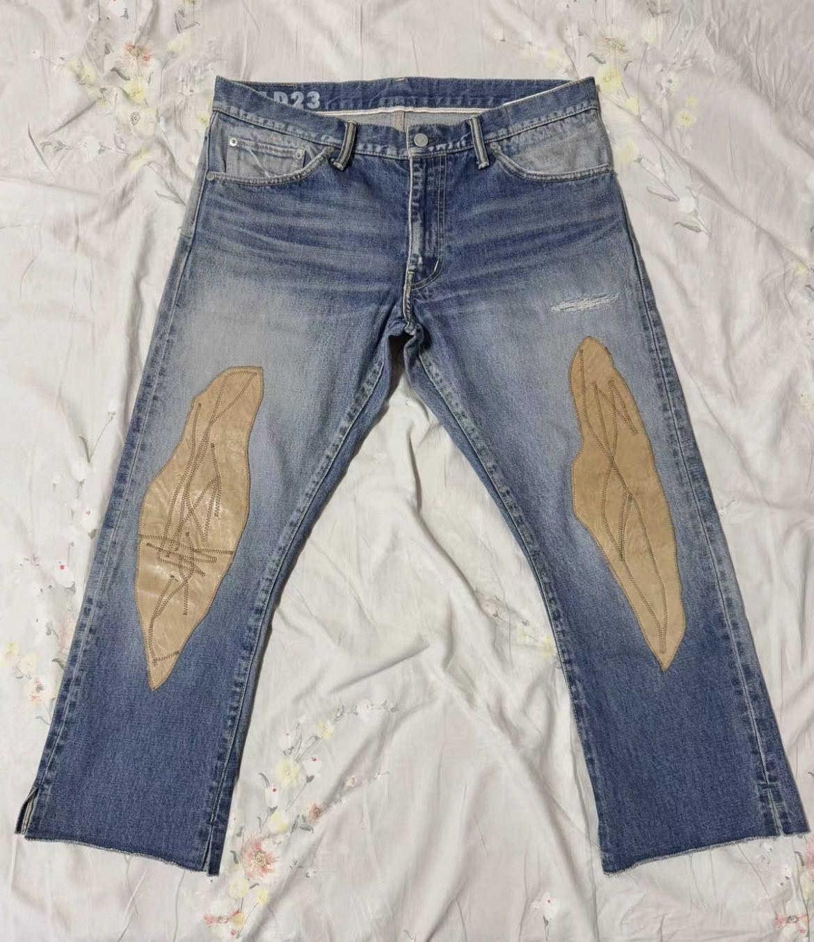 visvim 20ss social sculpture sheepskin patch washed denim jeans