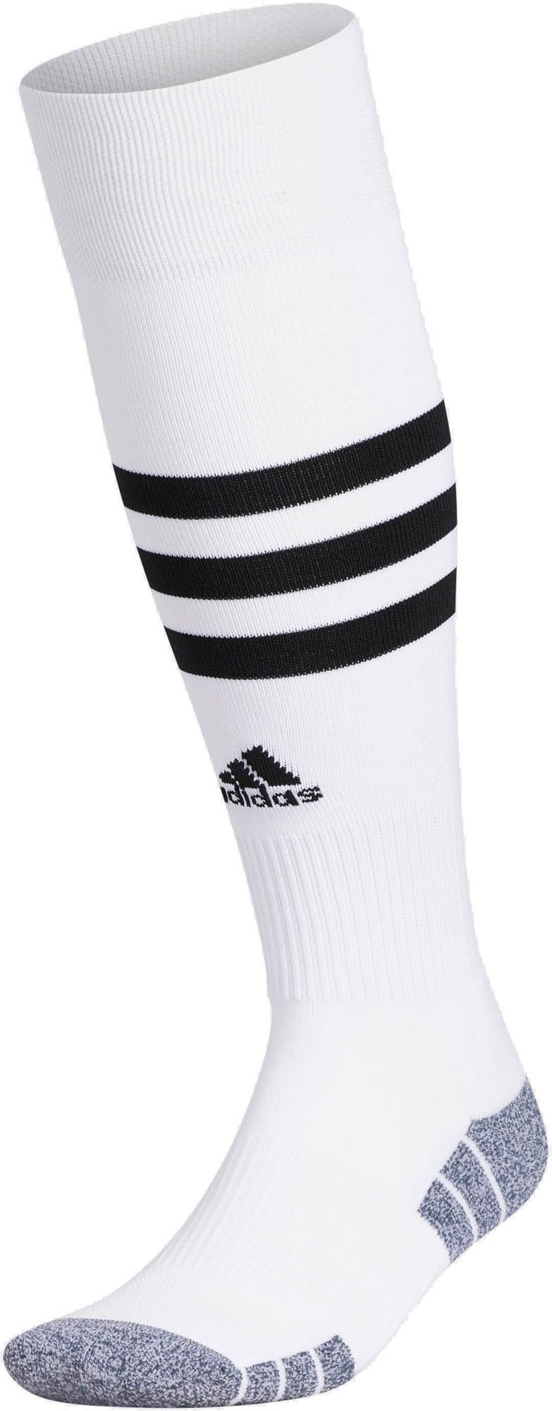 Fit & Design Standard fit knee-length soccer socks Lightweight construction for a close fit and excellent ball touch Target cushioning at heel and toe for shock absorption Double welt cuff for added mobility Arch and ankle compression for a secure and snug fit Mesh on top of the foot provides optimal breathability Knit-in size indicator on the bottom of the foot bed for quick reference adidas® 3-stripes graphic shows off modern, athletic style Technology AEROREADY® moisture-absorbing properties to keep you dry and comfortable