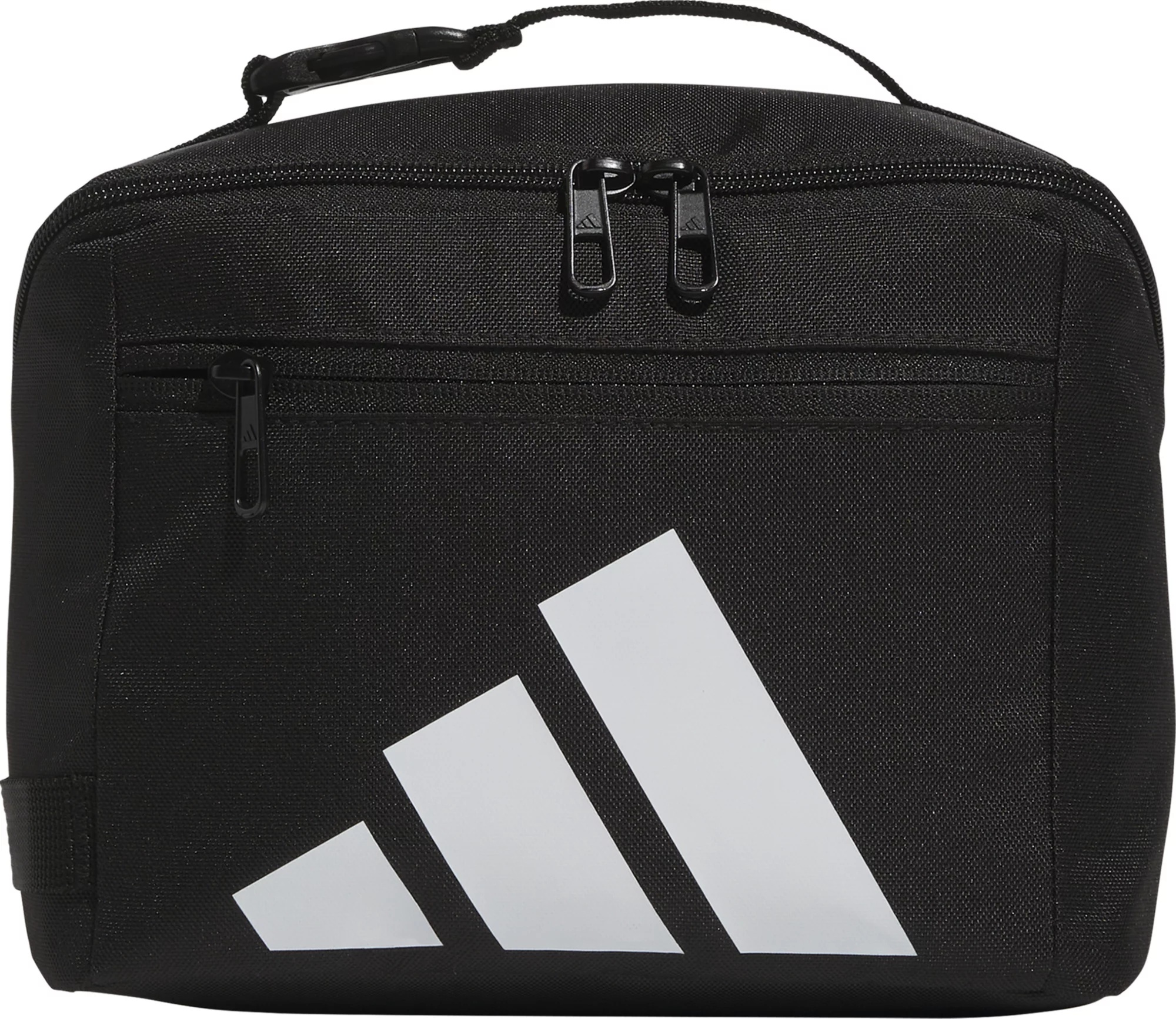 Bring your lunch with you when you're on the go. This adidas lunch bag is insulated for temperature control and has a mesh pocket inside that can hold small items. Use the clip lock on the handle to attach the bag to your backpack. Design: Wipe-able material for easy spot cleaning with soap and water Insulated cooler material to keep your lunch and drink cold Zippered mesh pocket to hold an ice pack Expandable mesh pocket on back for easy snack storage Clip lock haul handle to easily clip onto a backpack Additional Details