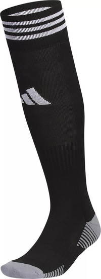 Fit & Design: Over-the-calf length Arch and ankle compression for a secure and snug fit Lightweight construction for a close fit and excellent ball touch Targeted cushioning at the heel and toe provides shock absorption Airy mesh ventilation in key areas provides breathability Classic 3-Stripe finish at the welt and a center-front Badge of Sport logo Left/right specific NCAA compliant Technology: Climate moisture-wicking yarn keeps your feet dry from sweat Additional Details:
